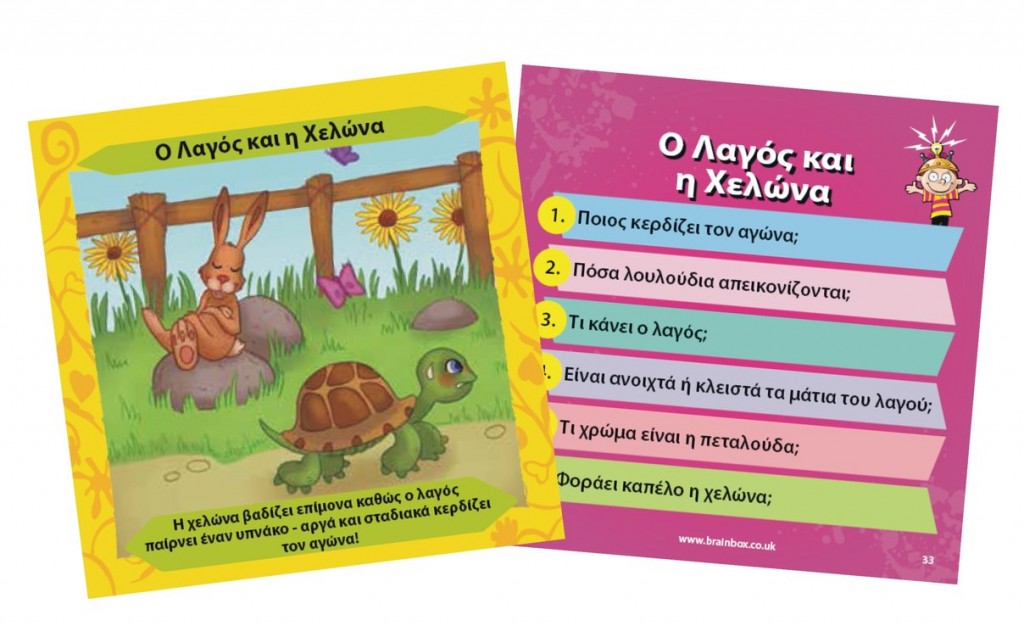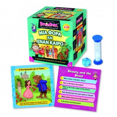 Μπες στη μαγική χώρα των παραμυθιών και συνάντησε τους αγαπημένους σου ήρωες! Διάλεξε μια κάρτα μέσα από το BrainBox. Αναποδογύρισε την κλεψύδρα και προσπάθησε να μάθεις απ'έξω την κάρτα σε 10 δευτερόλεπτα! Τώρα ρίξε το ζάρι και απάντησε στην αντίστοιχη ερώτηση. Αν απαντήσεις σωστά κρατάς την κάρτα, αν απαντήσεις λάθος βάζεις την κάρτα πάλι μέσα στο BrainBox.