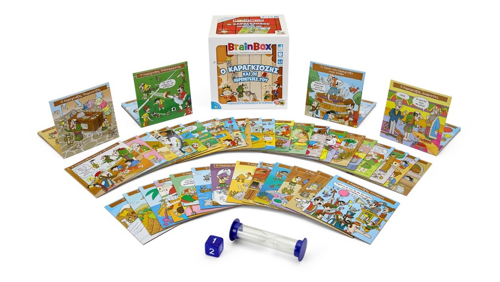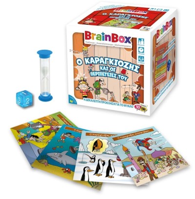 Αυτό το συναρπαστικό BrainBox με κεντρικό ήρωα τον διαχρονικό, λαϊκό και ασυμβίβαστο Καραγκιόζη, παρουσιάζει στιγμές από τις καθημέρινες ξεκαρδιστικές περιπέτειες που περνά αλλά και προκαλεί και στους υπόλοιπους ήρωες του Θεάτρου Σκιών. Με χαρακτηριστικά το αστείρευτο και πρωτότυπο χιούμορ και τη σατιρική διάθεση που διακρίνει τον αγαπημένο καμπούρη της λαϊκής μας παράδοσης Καραγκιόζη, θέλει να μας περάσει το μήνυμα ότι το χιούμορ είναι απαραίτητο στοιχείο στη ζωή για να διατηρούμε την αισιοδοξία μας στις περιπέτειες που μπορεί να τύχουν σε όλους μας. Σχεδιασμένο για να παίζουν οι γονείς με τα παιδιά τους, αυτό το υπέροχο παιχνίδι θα βοηθήσει στη βελτίωση της παρατηρητικότητας και των μνημονικών ικανοτήτων. Σκοπός του παιχνιδιού: Μάζεψε τις περισσότερες κάρτες μέσα σε 10 λεπτά.