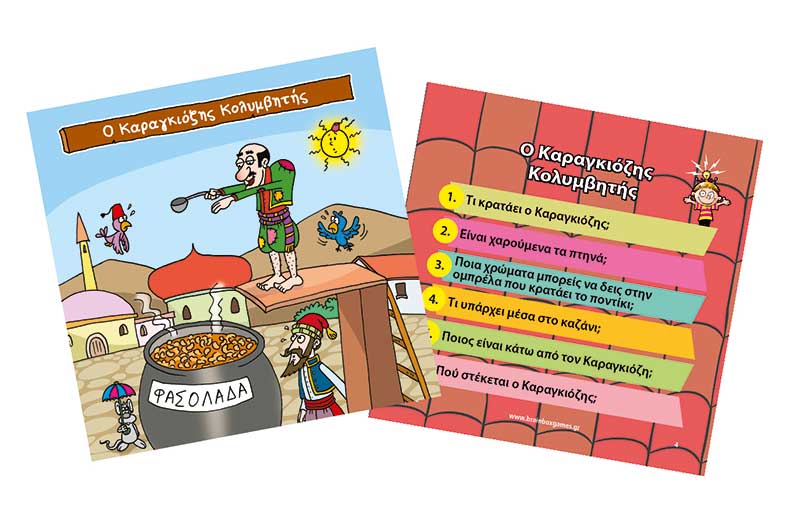 Αυτό το συναρπαστικό BrainBox με κεντρικό ήρωα τον διαχρονικό, λαϊκό και ασυμβίβαστο Καραγκιόζη, παρουσιάζει στιγμές από τις καθημέρινες ξεκαρδιστικές περιπέτειες που περνά αλλά και προκαλεί και στους υπόλοιπους ήρωες του Θεάτρου Σκιών. Με χαρακτηριστικά το αστείρευτο και πρωτότυπο χιούμορ και τη σατιρική διάθεση που διακρίνει τον αγαπημένο καμπούρη της λαϊκής μας παράδοσης Καραγκιόζη, θέλει να μας περάσει το μήνυμα ότι το χιούμορ είναι απαραίτητο στοιχείο στη ζωή για να διατηρούμε την αισιοδοξία μας στις περιπέτειες που μπορεί να τύχουν σε όλους μας. Σχεδιασμένο για να παίζουν οι γονείς με τα παιδιά τους, αυτό το υπέροχο παιχνίδι θα βοηθήσει στη βελτίωση της παρατηρητικότητας και των μνημονικών ικανοτήτων. Σκοπός του παιχνιδιού: Μάζεψε τις περισσότερες κάρτες μέσα σε 10 λεπτά.